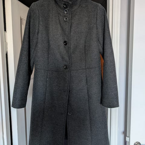 Tummansininen takki,pitää hyvin tuulta.Vastaa mielestäni kokoa 42.Lähetys onnistuu.