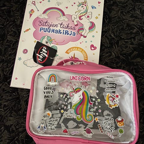 Pyyhe, koiramäki muistipeli ja kassi, kaikki avaamattomia.