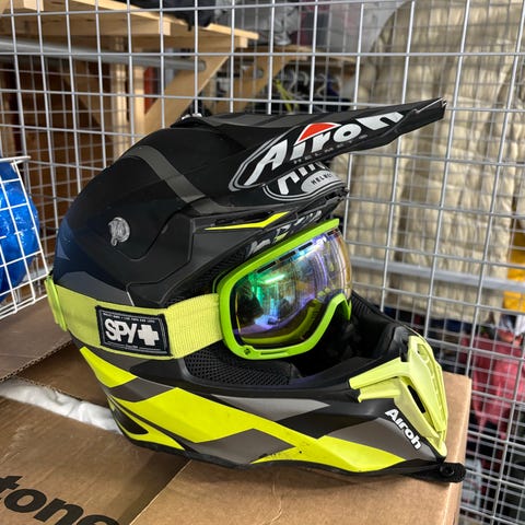 Arai crossikypärä kelkka-, mönkijä- tai mopoharrastukseen. Harvinaisella värityksellä. Kypärän ulkopinta todella hyvässä kunnossa kuten muukin kypärä. Koko 61-62cm. Paino 1260g. Ollut itsellä aikoinaan kelkka- ja mönkkärikäytössä.