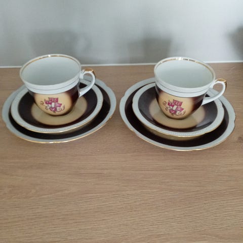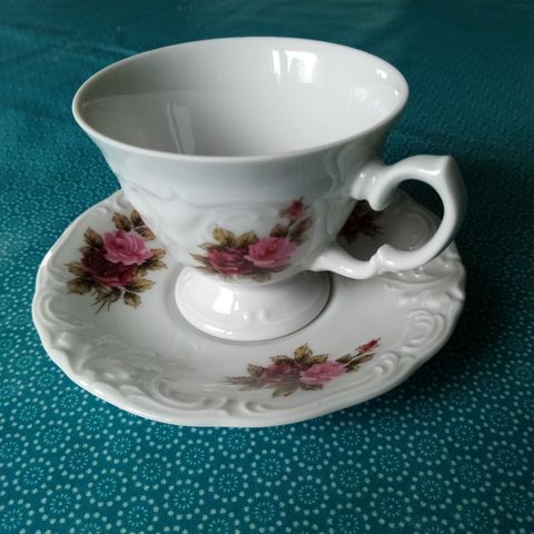 Rheinpfaltz hartporzellan posliinia,kuppi 10cm korkea,asetin halkaisija 17.5cm