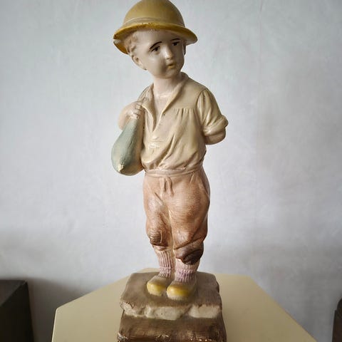Kuvissa oleva miespatsas, jonka materiaalista en ole varma, ei kuitenkaan kipsiä. kork. n. 44 cm. Nouto Kuopiosta keskustasta.
