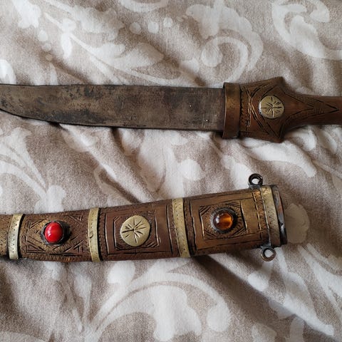 Keskiaikaistyylin tikari pituus ~44 cm + tuppi + teline