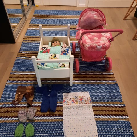 Siisti ja hyväkuntoinen säilytys nukke- pussuka pituus noin 60, ja leveys pussukan kohdalta 35cm