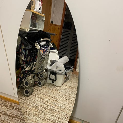 Myydään valkoisilla pokilla oleva ehjä peili koossa 40x150cm. Voidaan asentaa seinälle pystyyn tai vaakaan, lisäksi peilissä on saranat. Saranoiden johdosta olen pitänyt peiliä samalla korukaappina ja takapuolelle onkin liimattu koukkuja koruja varten (näkyy kuvissa).