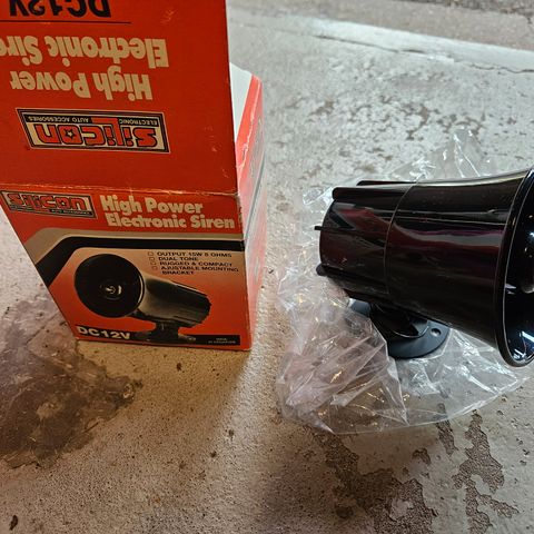 Myydään kuvien mukainen 12 voltin (DC) sähköinen sireeni, joka soveltuu moniin eri tarkoituksiin. Kyseessä on HITPOINT PS-5203 -malliin viittaava laite.