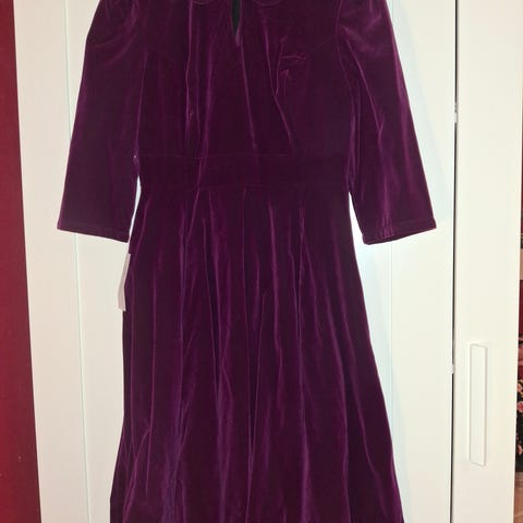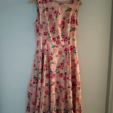 Uusi, upea kellohelmainen mekko koossa L. Uusi, laput kiinni. Musta, pinkit ruusut. Kuva vääristää väriä, kukat pinkit. Kaapissa vähän ryppyyntynyt.
