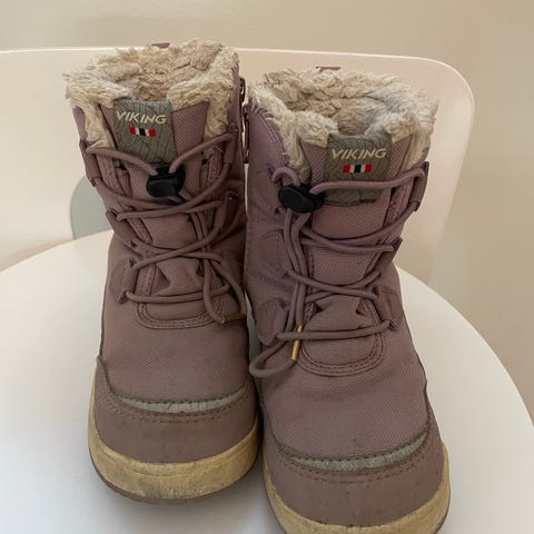 Myydään uutena ostettu ja yhdellä lapsella käytössä olleet Vikingin talvikengät, koko 27. Väri on tummanpunainen ja kengissä on heijastimet edessä ja takana. Etuosassa hieman kulumaa, joista kuvat. Tämä huomioitu hinnassa. Kengät ovat olleet meille hyväksi todetut ja jalat ovat pysyneet lämpiminä.