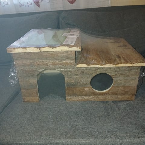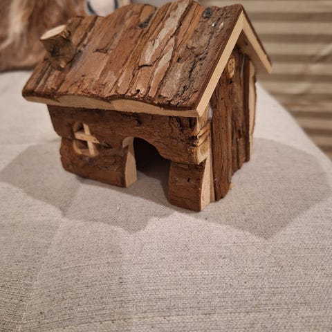 Myydään jyrsijöiden puinen pesämökki, sopii kääpiöhamsterille tai hiirelle, ehjä mökki. Kuvissa vähän pölyinen.