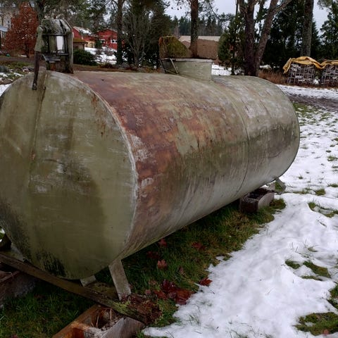 Sininen pönttö 1300 litranen vuodelta joskus. Tämä myös ollut vielä kesällä käytössä. Pumppu ok, mutta tankkausletku piakkoin vaihdon tarpeessa.