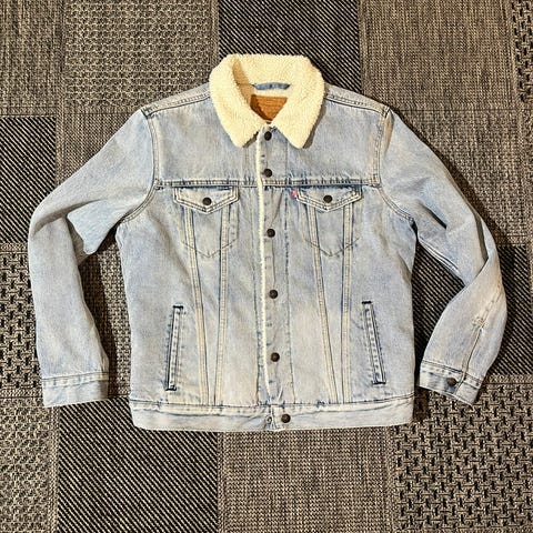 LEVIS mens M Sherpa Trucker jacket teddyvuorillinen farkkutakki 100%cotton outer