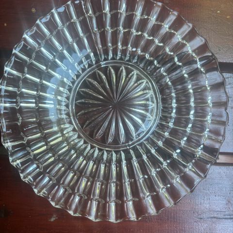 6 kristallista kakkulautasta, joista yksi on eri paria. Nämä tosi antiikkisia. Reilusti yli sata vuotta ikää? 3 tarjoilulautasta, joista yksi moderni taottu ja yksi antiikkinen hopeareunuksinen kristallikuppi.