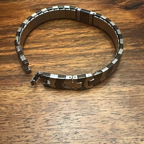 L-kokoinen magnetix rannekoru joustavilla korupaloilla. Koru terästä, sisäpinnalla kaksi pientä magneettia joiden pitäisi parantaa verenkiertoa. Itse pitänyt tästä enemmän visuaalisen ilmeen vuoksi joten terveys hyödyistä en osaa sanoa löytyykö semmoisia.