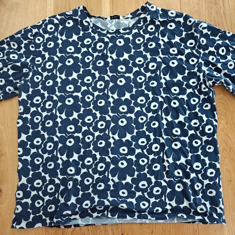 Marimekon pehmeä ja kaunis aridi unikko samettipaita. Korkea kaulus, pitkät hihat, vetoketjukiinnitys takana. Pehmeää ja joustavaa samettista 80% puuvilla, 20% polyamidi. Koko m. Kai-kai 50cm, olka-helma 58cm. Siisti kunto. Juuri täältä itse ostettu, mutta oli hartioista liian pieni 😪