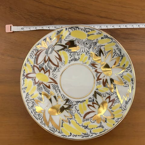 Lautasen pohjassa Lomonosovin leima ja teksti: Hand Decorated, St. Petersburg Russia