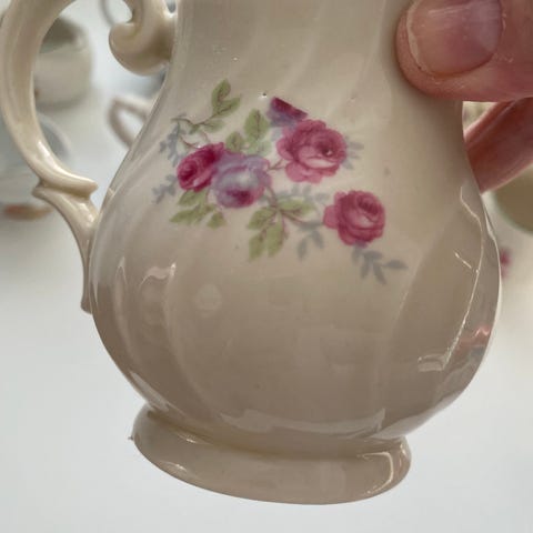 Arabia kukkakuvioinen sokerikko, valmistettu keramiikasta. Sisältää koristeellisen kukkakuvion, joka on maalattu astian pintaan.