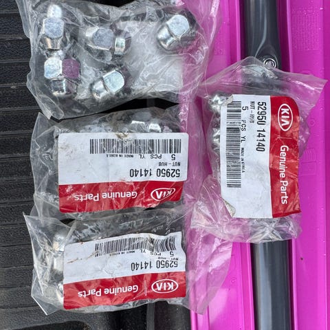 Uusi sarja Kian pyörän muttereita. Sopii varmasti myös muihinkin merkkeihin. 21mm kannalla