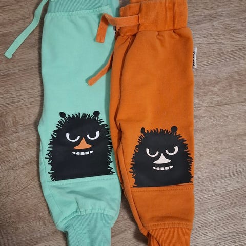 Martinex Muumi collegehousut koossa 62. Resorin sauma on avattu sisäpuolelta (kuva) , jotta saatiin vaihdettua kuminauha, koska alkuperäinen oli todella kireä. Ei vaikuta käyttöön🙂