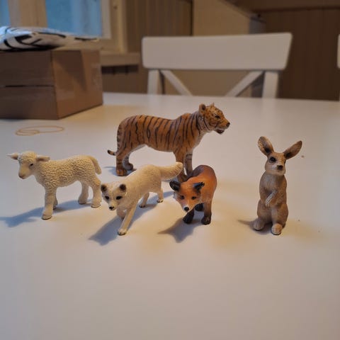 Schleich tiikeri ja kolme pentua, yksi pennuista valkoinen. Hyvä kunto.