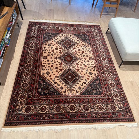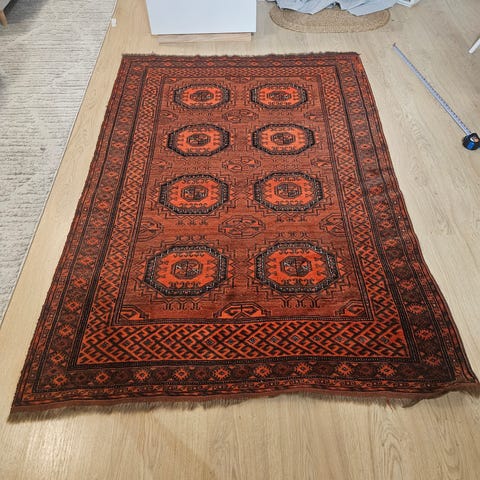 Myydään perintömatto, vanha mutta kauniisti pidetty. Ei tahroja tai hajuja. Ymmärtääkseni on käsinsolmittu. Ei mitään merkkiä. Todella kaunis väri. Päätyloimet voisi halutessaan siistiä.