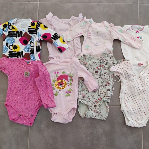 Myydään kuvien mukaisessa kunnossa oleva 62 vauvan bodyt 4 kappaletta Vaatepaketti
