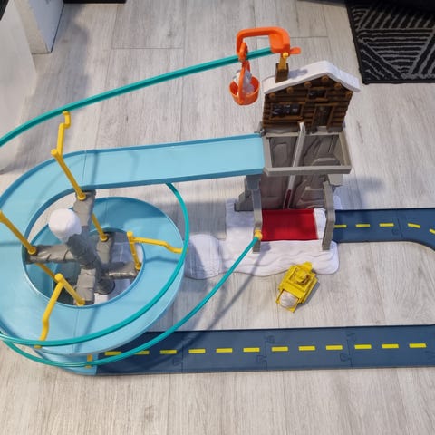 Myydään leikitty, mutta edelleen toimiva leikkisetti. Mukana myös hahmot (paitsi kajaa ei ole). Tähän yhdistetty monta leikkisettiä ja tämä on iso ratasetti/ lelu. Radasta on tehty yksi versio josta otettu kuva. Tätä voi rakennella monella tavalla.