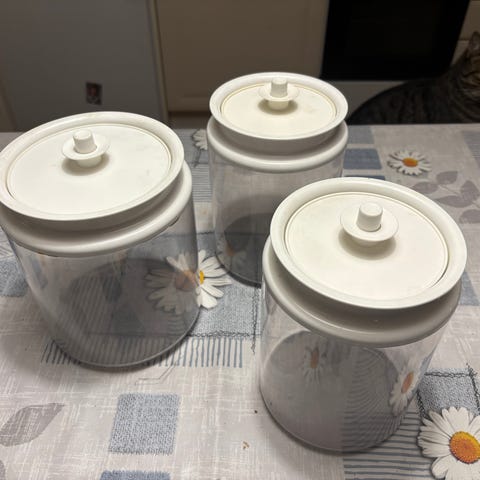 Tiiviskantinen pieni purkki 0,5 litraa. Ei ole käytetty. Säilytetty vain kaapissa.