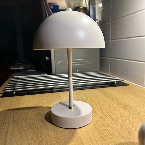 Jyskin pieni pöytävalaisin, toimii paristoilla. Useampi eri kirkkausaste, joita pystyy säätämään.