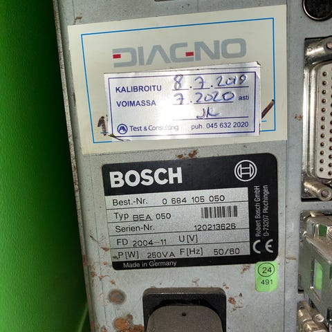 Automaattinen diagnostiikkakompleksi Bosch FSA 740. Sisältää: - Asema FSA740: tietokone, näyttö, ohjelmisto, tulostin ja kaukosäädin. - Skanneri KTS 540 (bluetooth), kaasuanalysaattori bensiinikäyttöisille ajoneuvoille BEA 050. Täydellisin setti erinomaisessa kunnossa + sarja sovittimia eri automerkeille. Light-lisenssi päättyy 31.12.2025.