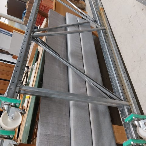 Metallisia hyllylevyjä, useita pituuksia/leveyksiä. Useita trukkilavallisia.