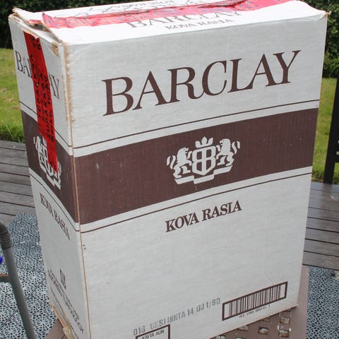 JÄTTI Suomi Barclay tupakkalaatikko 80-luku tupakka-aski 61cm mainosesine