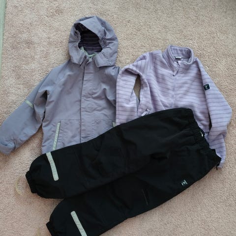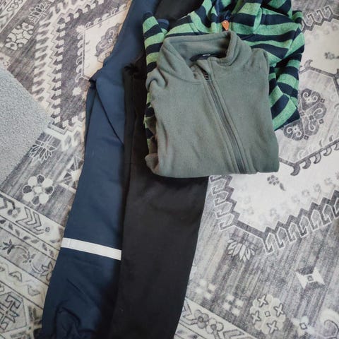 Kolme fleecatakkia ja kahdet ulkohousut, myydään yhdessä tai erikseen. Kaikki siistejä käytettyjä.