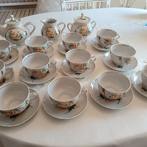 Tee- kahvi posliinisetti, kullattu, käyttämätön