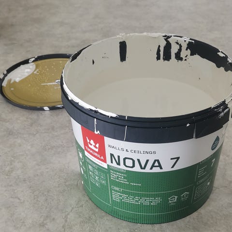 Sisustushommista ylijääneet maalit. Sininen on Tikkurilan Geneva ja vihreä New York. Kummassakin purkissa noin puolet jäljellä. Vain nouto Kempeleestä. 10e purkki tai 18e, jos otat molemmat.