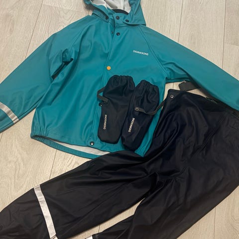Didriksons Gallon sadetakki 130cm & Jonathan sadehousut 128cm