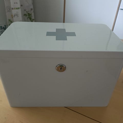 Madam Stoltzin metallista valmistettu, hieman vintagetyylinen ensiapulaatikko / lääkelaatikko, jossa on saranoilla avattava kansi. Kannessa kohokuvioitu ensiapu-ristin kuva. Mitat n. 22,5 x 17,5 cm, korkeus n. 6,5 cm. Laatikko on todella siistissä kunnossa. Hinta 20€. Nouto Espoo / Helsinki (esim. Espoontori / Lippulaiva / Sello / rautatieasema / Kamppi). Voin myös postittaa, jolloin postituskulut lisätään hintaan. Tori-Diili tai tavallinen postitus.