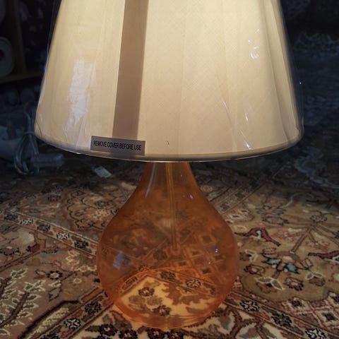 Pientä käytön jälkeä sekä jalassa että varjostimessa, mutta kokonaisuus näyttää edelleen siistiltä ja hyvältä.