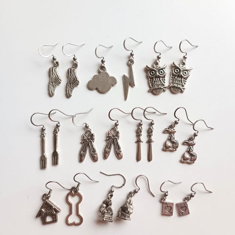 Kuvan korvissetti. Siihen kuuluu 10 paria plus silikoniset korvisstopparit. Materiaali korumetallia.