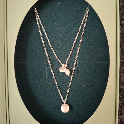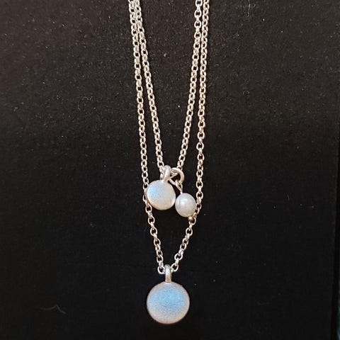 Kalevala Korun Onnenhelmi kaulaketju. Kaksiosainen ketju, jota voi käyttää yhdessä tai erikseen. Käytetty, mutta hyväkuntoinen ja ehjä.