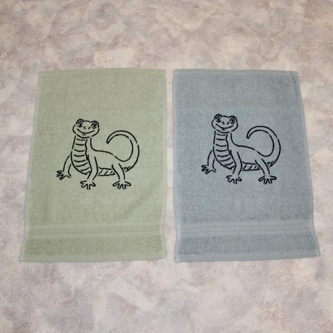 Pyyhettä on mintunvihreän, lilan ja vaaleanharmaan värisenä.