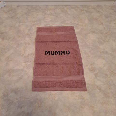 Uusi 30x50cm pyyhe, johon käsinpainettu enkeli kuva.