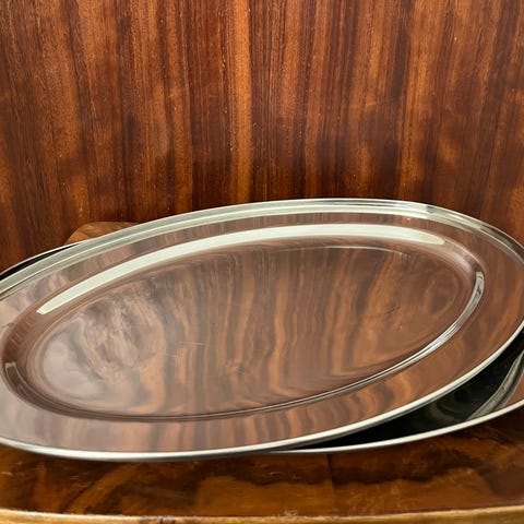 Naarmuuntunut metalli tarjotin esimerkiksi kynttilöiden aluslautaseksi