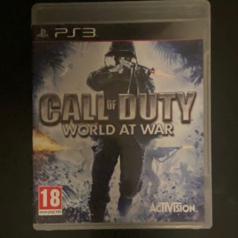 Call of Duty World at War Playstation 3 peli. Toimii Playstation 3 -pelikonsolilla. Sisältää pelilevyn, ohjekirjan ja kotelon. Havaittavissa pieni hius naarmu levyssä, mutta ei haittaa toimivuuteen laisinkaan.