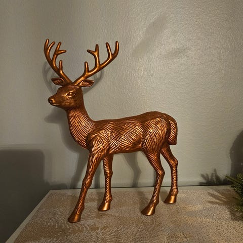 Valkoinen poro, jolla on pörröinen turkki (talvi-/jouluhenkinen)