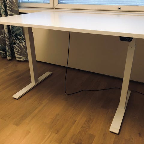 Pöytä on tukeva ja hiljainen, ja soveltuu hyvin etätyöhön tai pidempäänkin istu–seiso-käyttöön. Myydään pois käytön vähäisyyden takia.