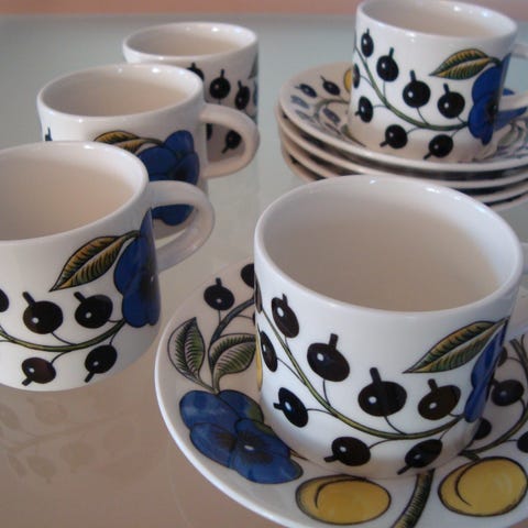 Arabia Birger Kaipiainen Paratiisi kahvikupit ja asetit 2kpl.
