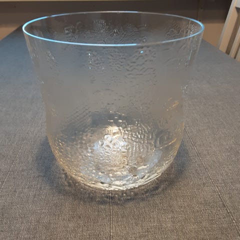 Myydään suuri Nuutajärven kirkas Fauna kulho. Suunnittelija Oiva Toikka. Ehjä, puhdas. Korkeus 18,5cm, halkaisija noin 19cm.