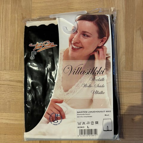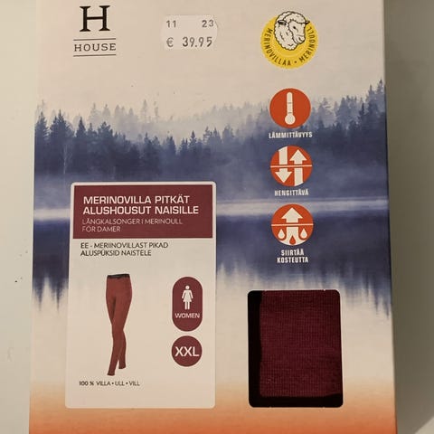 Uudet sinetöidyssä pakkauksissa olevat mustat Actuelle villasilkki aluspaita ja leggingsit. Koko XXL. Todella reilu koko.