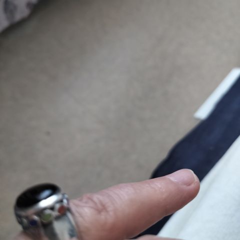 Muhkea ja näyttävä sormus hopeaa isolla unakiitti -kivellä. Suomalaisen käsityöläisen tekemä, on hopeaa mutta ei leimoja.