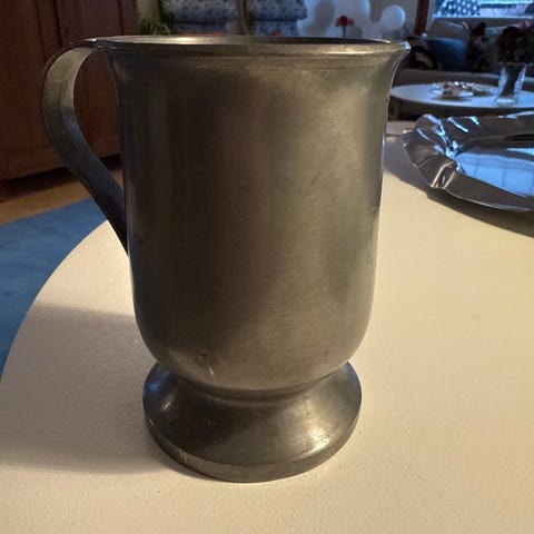 Vanha vasarakuvioinen tinatuoppi, selangor pewter