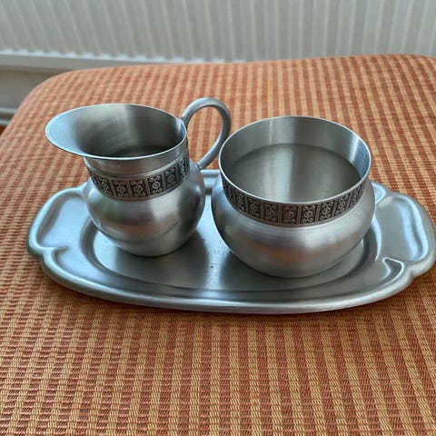 Sokerikko/kermakko tarjottimella, tinaa